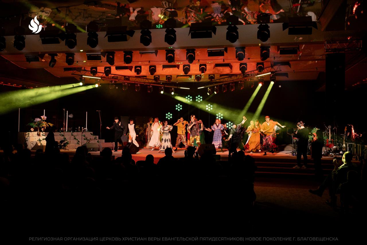 Театрализованная постановка открыла торжество. Творческая команда церкви показала евангельскую историю рождения Спасителя. Затем началась музыкальная часть вечера, на которой детские и взрослые команды прославления церкви исполнили рождественские композиции разных жанров.